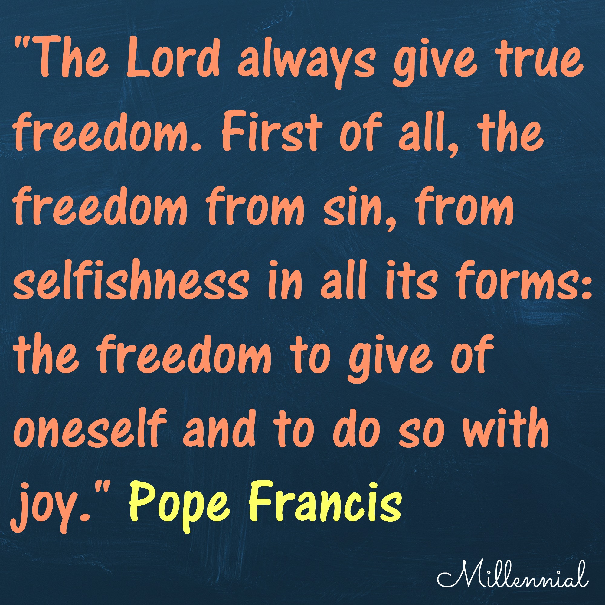 Pope Francis: “The Lord always give true freedom. First of all, the freedom from sin, from selfishness in all its forms: the freedom to give of oneself and to do so with joy.”