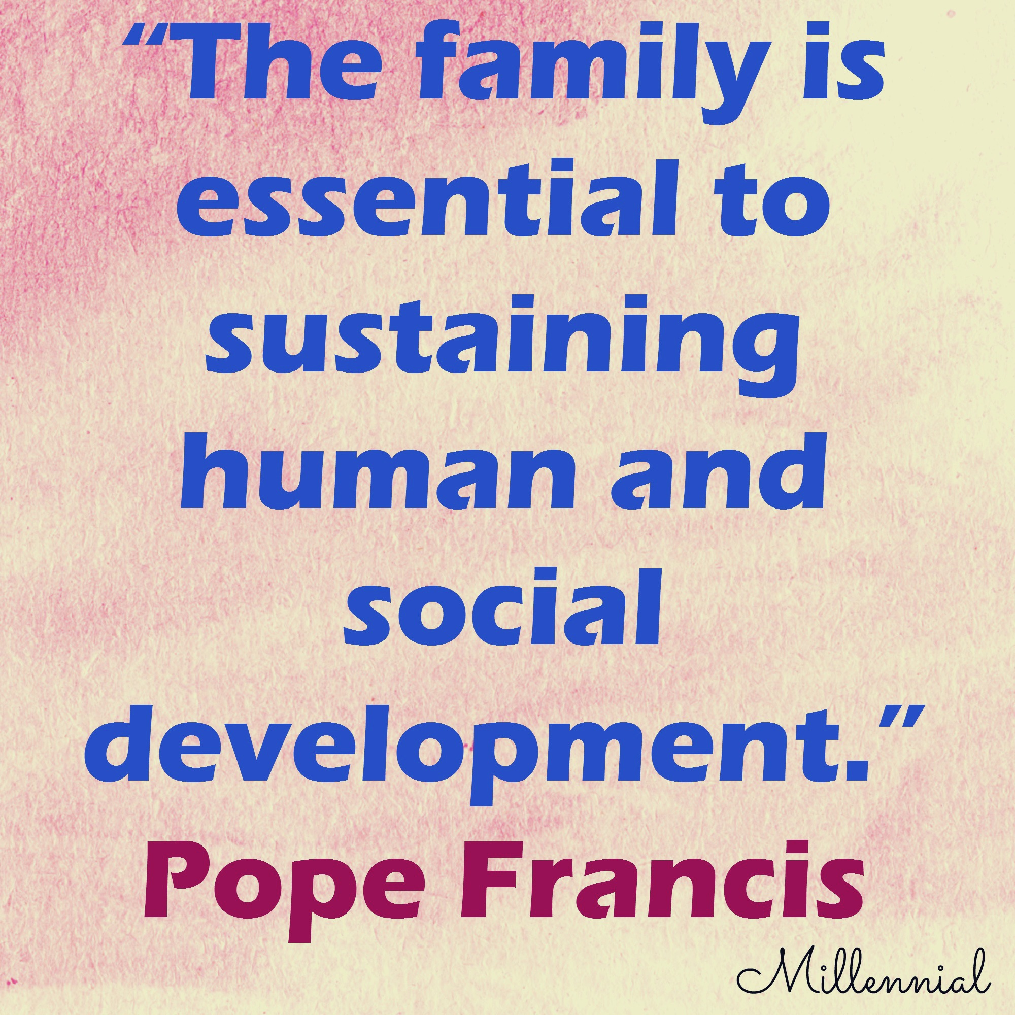 Pope Francis: “The family is essential to sustaining human and social development.”