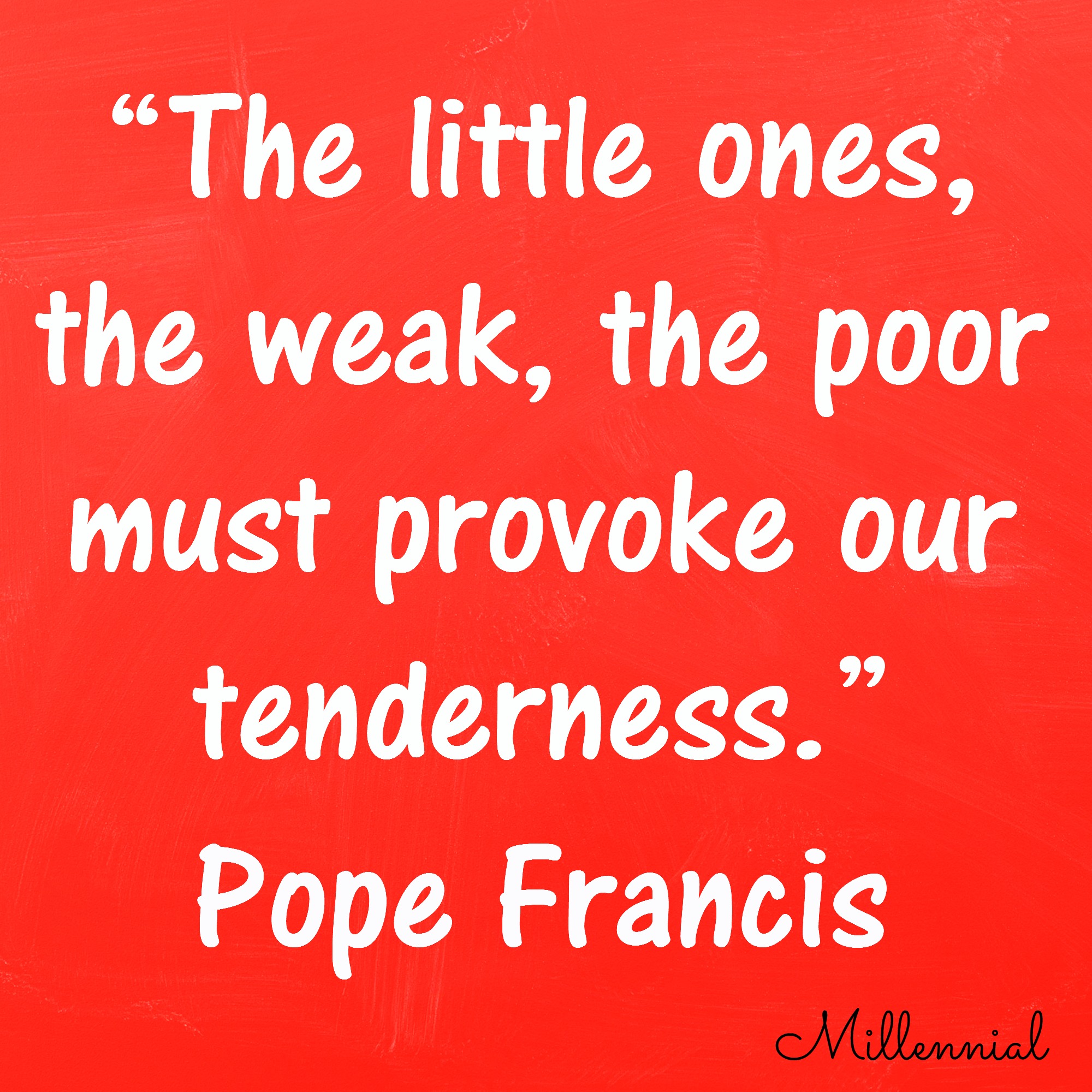 Pope Francis: “The little ones, the weak, the poor must provoke our tenderness.”