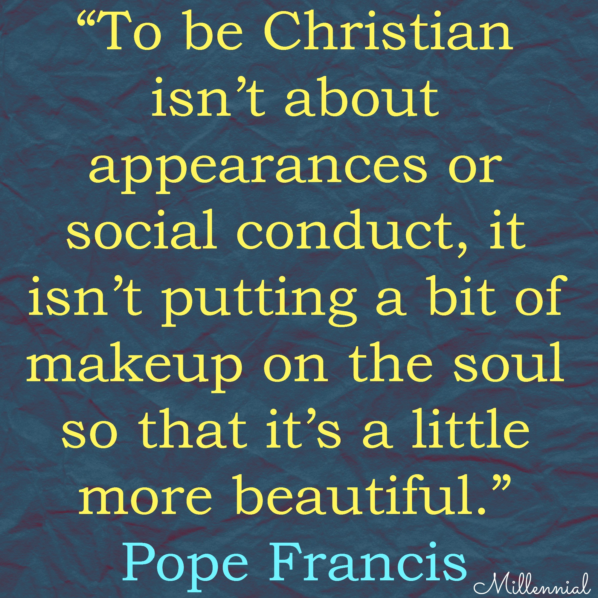 Pope Francis: “To be Christian isn’t about appearances or social conduct, it isn’t putting a bit of makeup on the soul so that it’s a little more beautiful.”