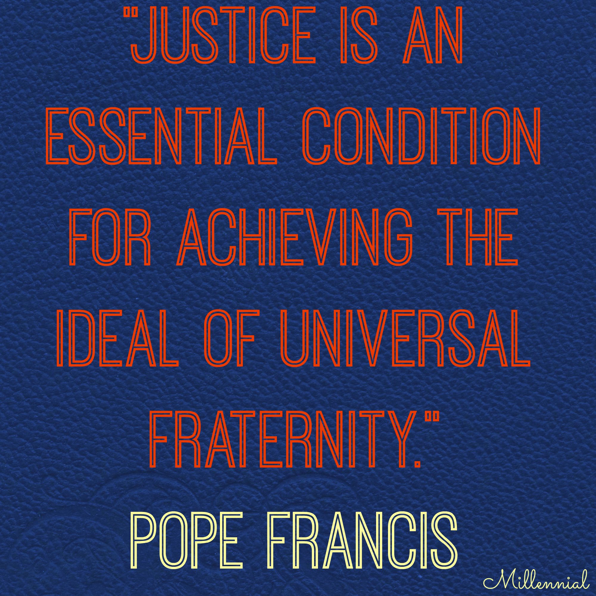 Quote of the Day Pope Francis: “Justice is an essential condition for achieving the ideal of universal fraternity.” Share this: Share on Facebook (Opens in new window) Facebook Share on LinkedIn (Opens in new window) LinkedIn Share on Threads (Opens in new window) Threads Share on Reddit (Opens in new window) Reddit Share on Tumblr (Opens in new window) Tumblr Share on X (Opens in new window) X Share on Bluesky (Opens in new window) Bluesky Share on Pinterest (Opens in new window) Pinterest Email a link to a friend (Opens in new window) Email Print (Opens in new window) Print Like Loading... Related