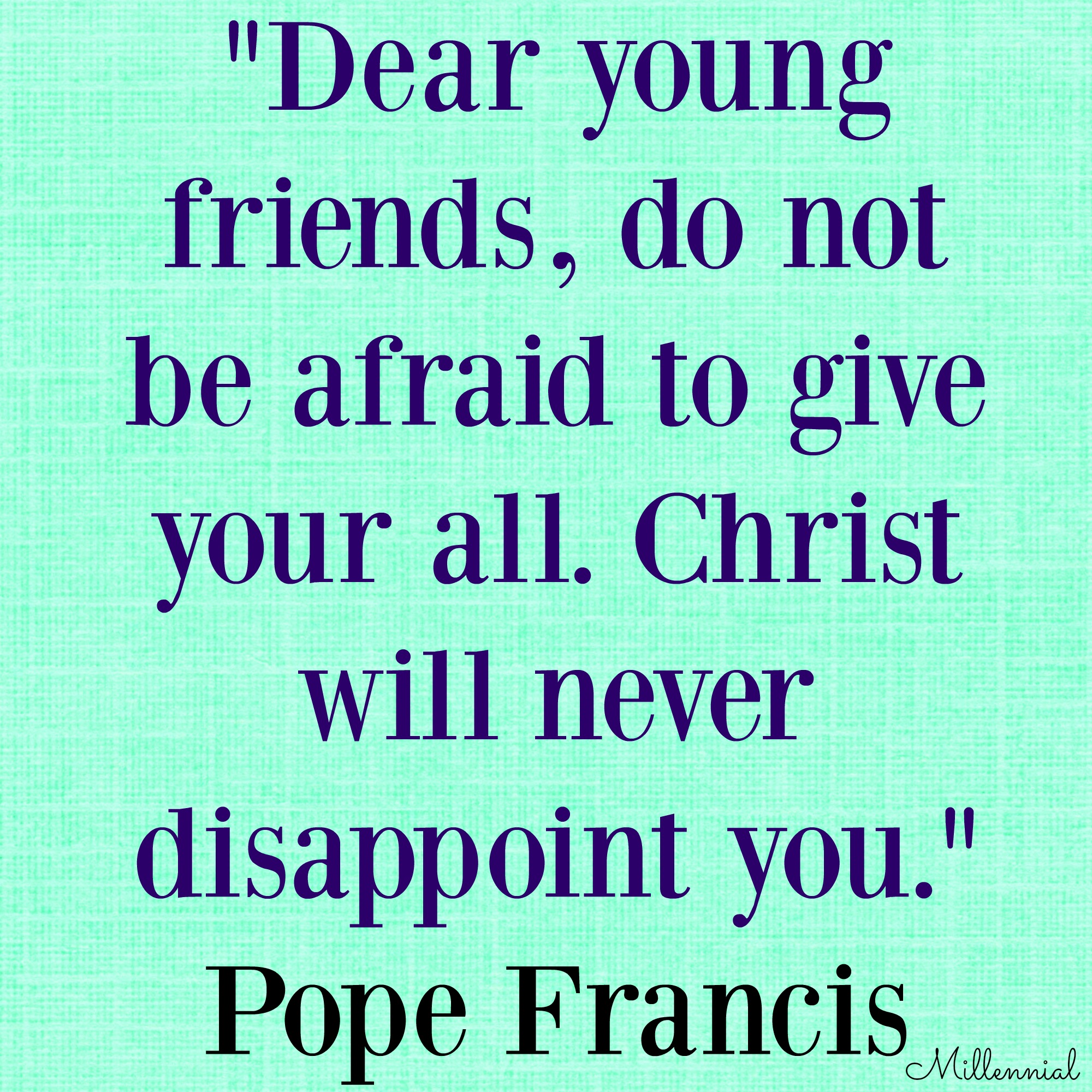 Pope Francis: “Dear young friends, do not be afraid to give your all. Christ will never disappoint you.”