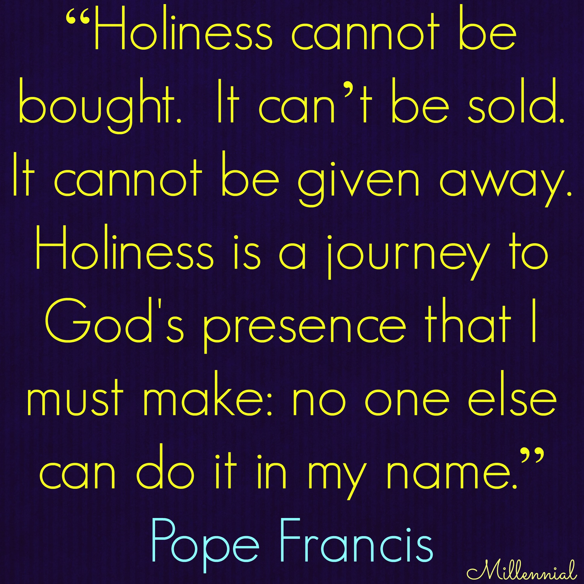 Pope Francis: “Holiness cannot be bought. It can’t be sold. It cannot be given away. Holiness is a journey to God’s presence that I must make: no one else can do it in my name.”