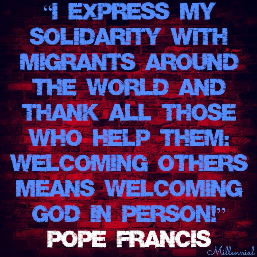 Pope Francis: “I express my solidarity with migrants around the world and thank all those who help them: welcoming others means welcoming God in person!”