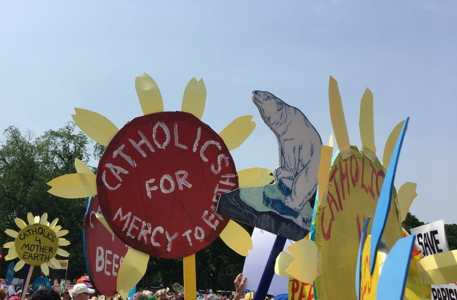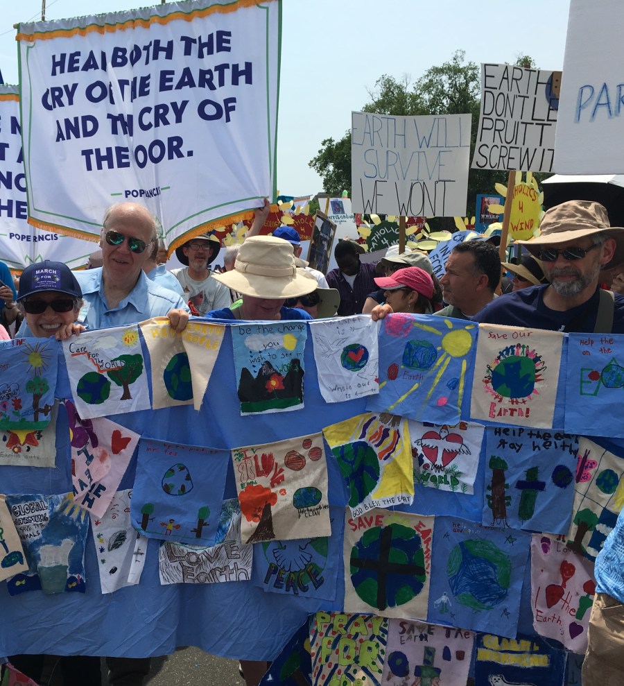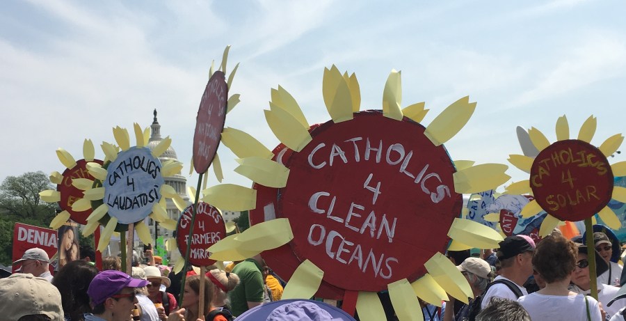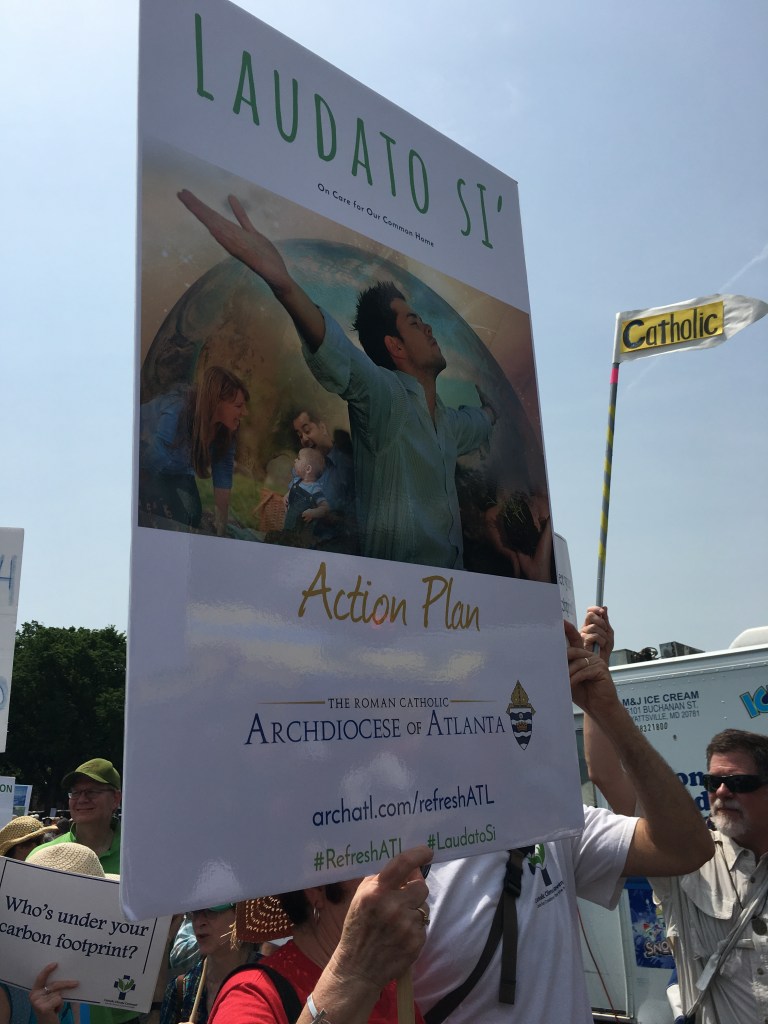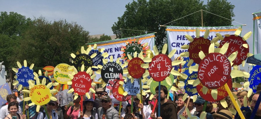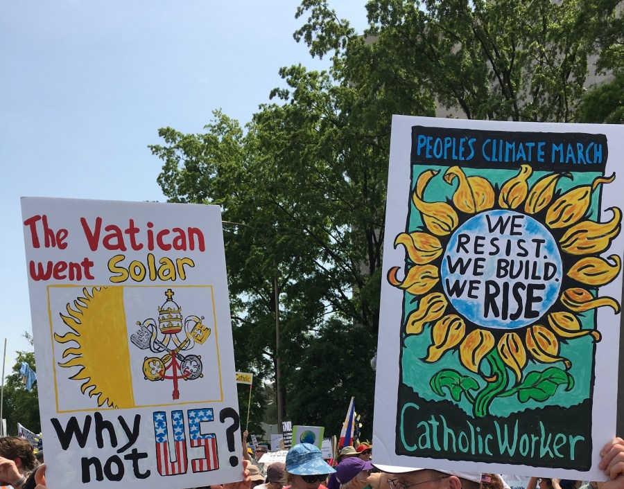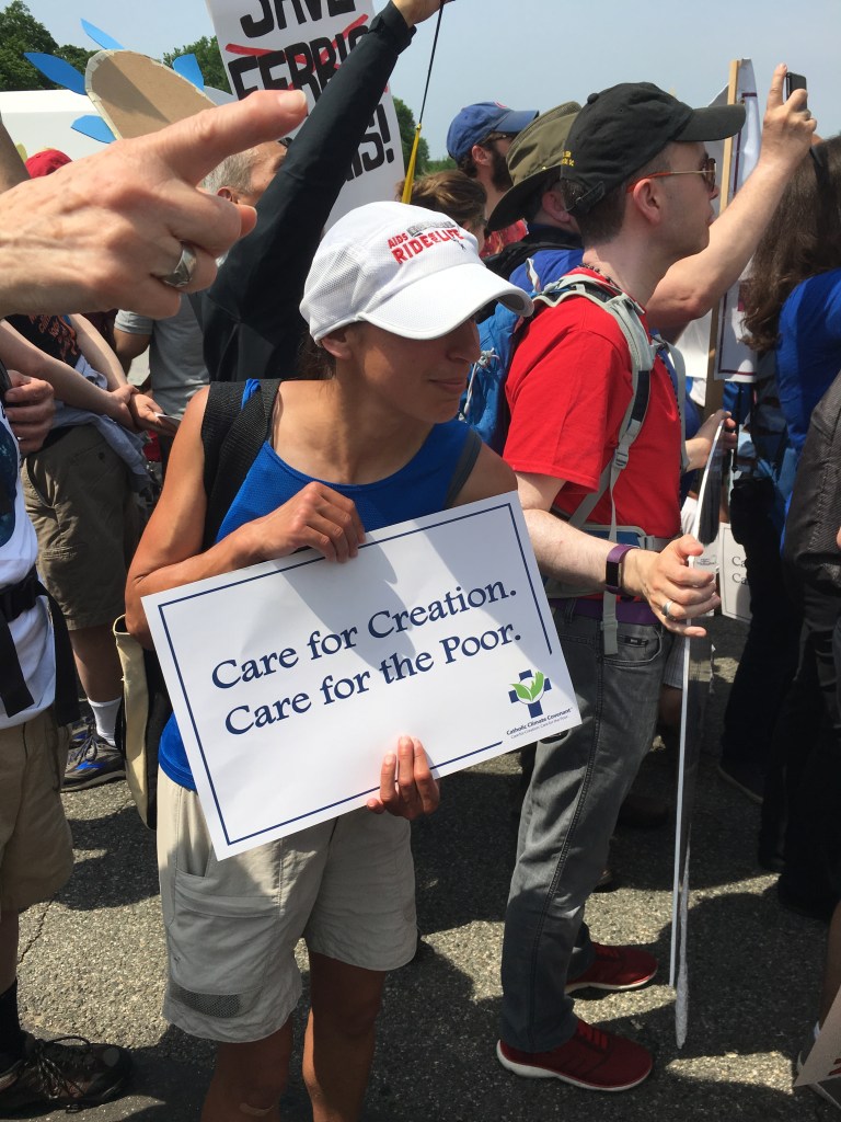 Yesterday’s People’s Climate March likely drew over 200,000 people, despite the scorching heat. There was a large faith contingent, including many Catholics who echoed Pope Francis’ call to address climate change, protect creation, and care for the poor. Here are some pictures of Catholics at the march: