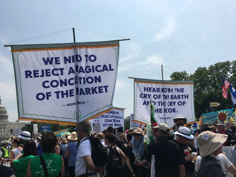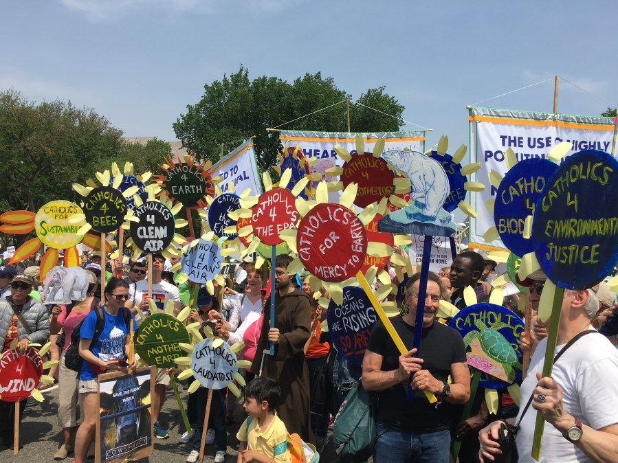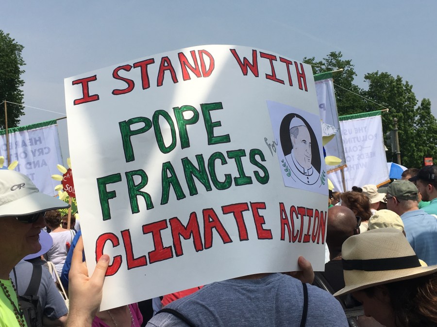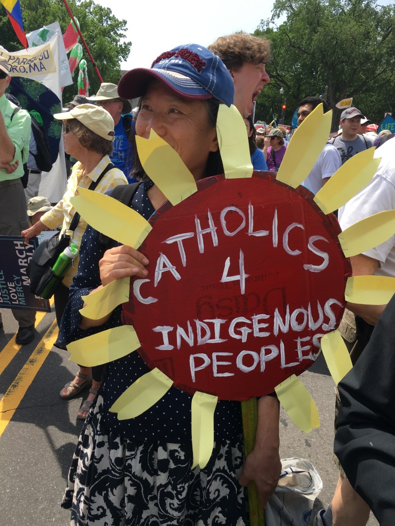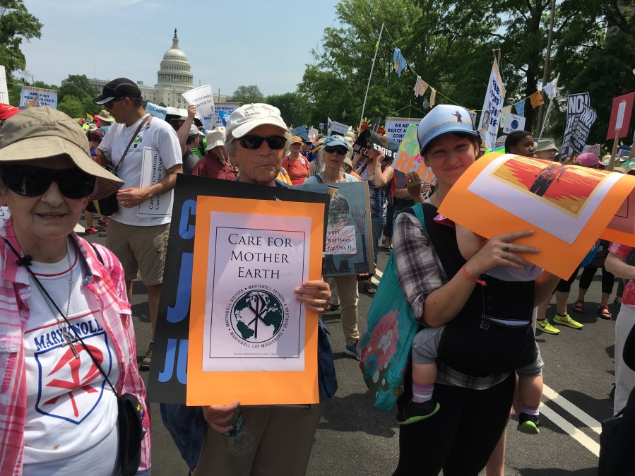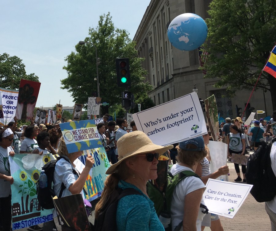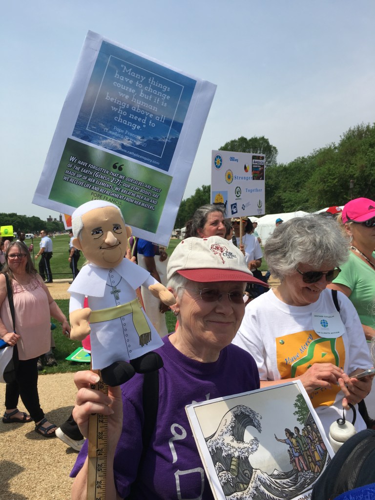 Yesterday’s People’s Climate March likely drew over 200,000 people, despite the scorching heat. There was a large faith contingent, including many Catholics who echoed Pope Francis’ call to address climate change, protect creation, and care for the poor. Here are some pictures of Catholics at the march: