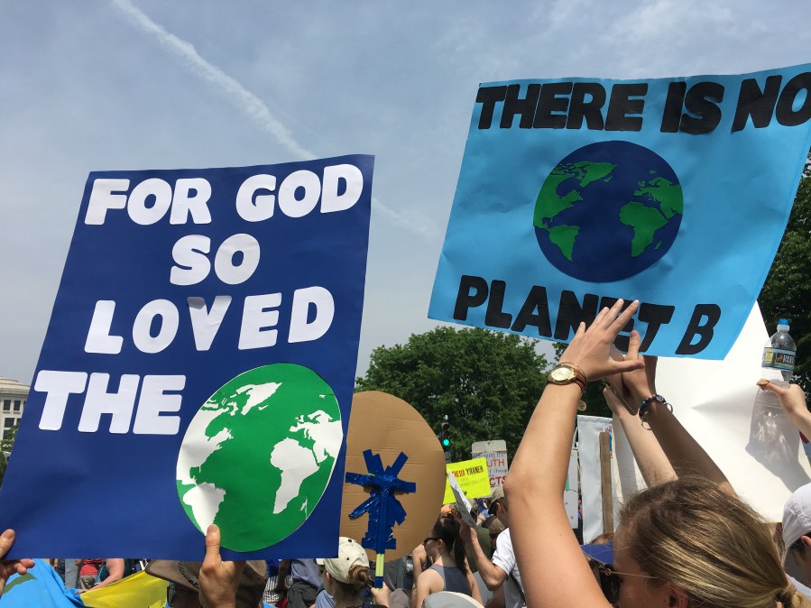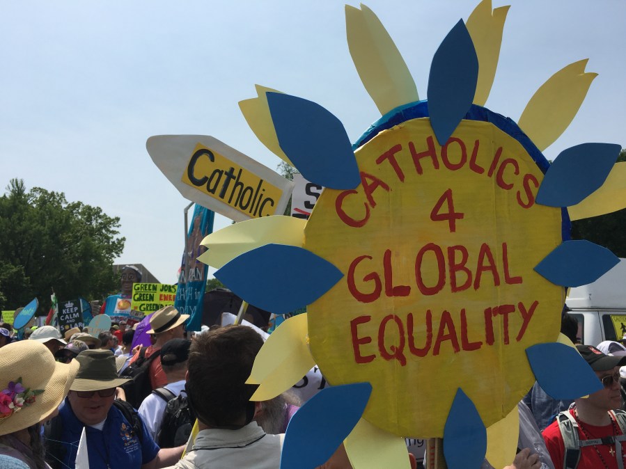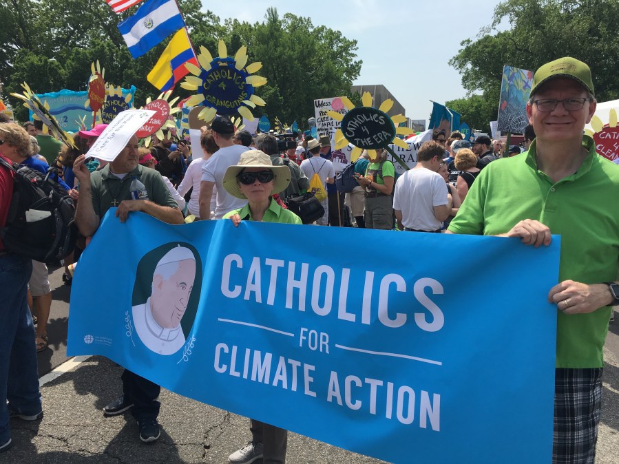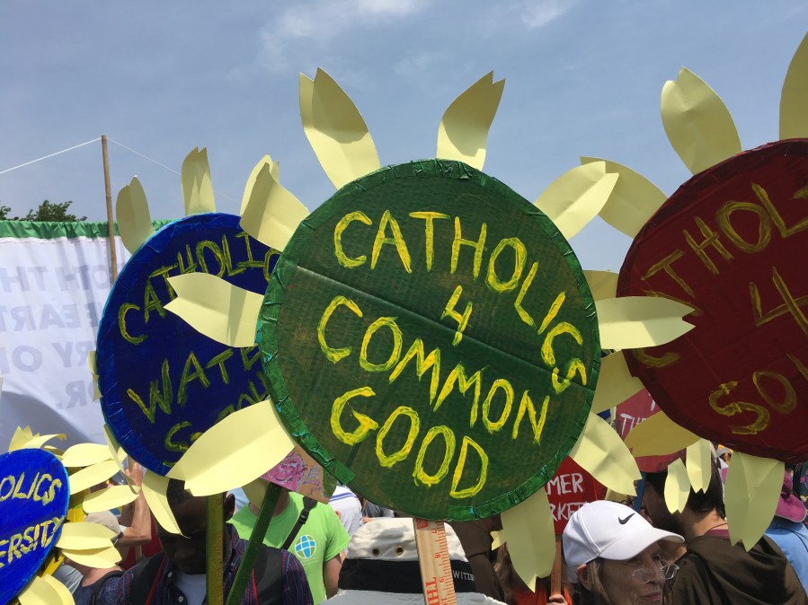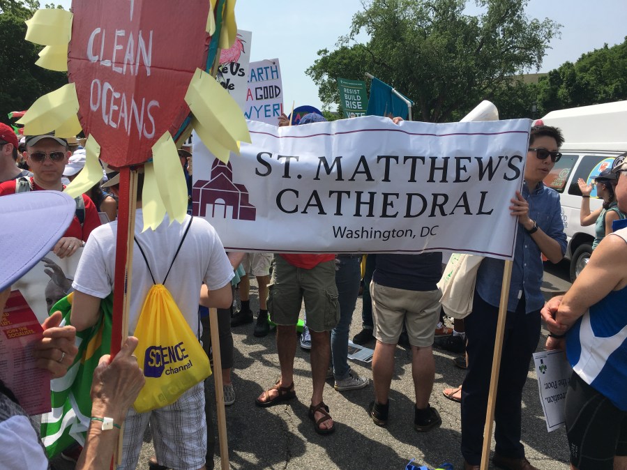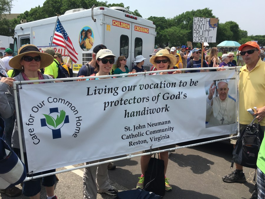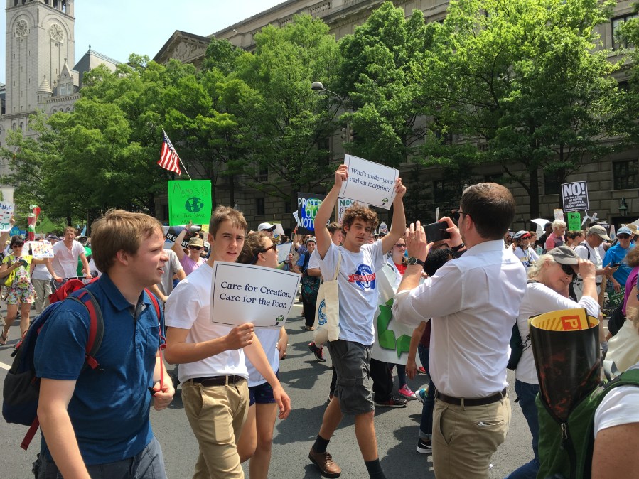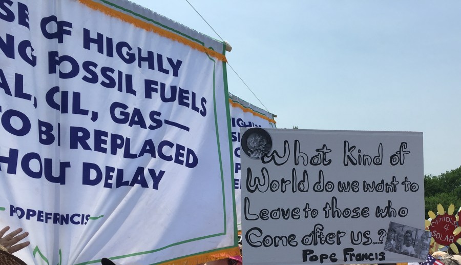 Yesterday’s People’s Climate March likely drew over 200,000 people, despite the scorching heat. There was a large faith contingent, including many Catholics who echoed Pope Francis’ call to address climate change, protect creation, and care for the poor. Here are some pictures of Catholics at the march: