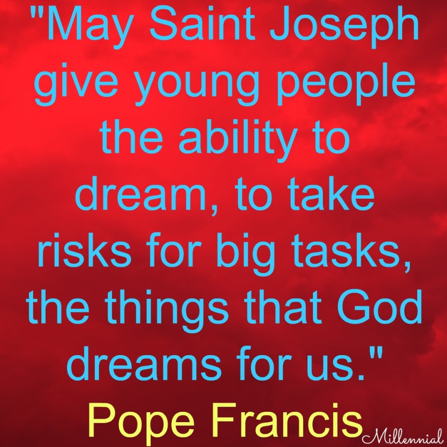 Pope Francis: “May Saint Joseph give young people the ability to dream, to take risks for big tasks, the things that God dreams for us.”