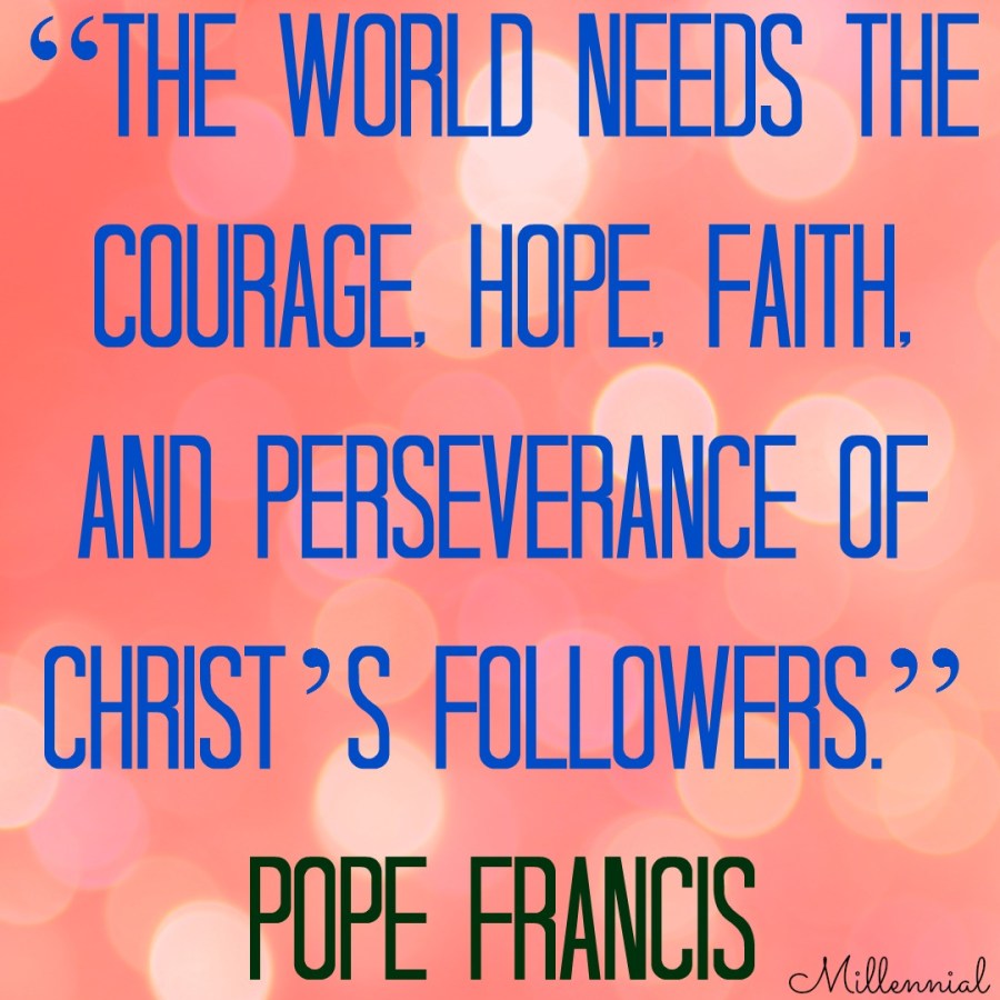 Pope Francis: “The world needs the courage, hope, faith, and perseverance of Christ’s followers.”