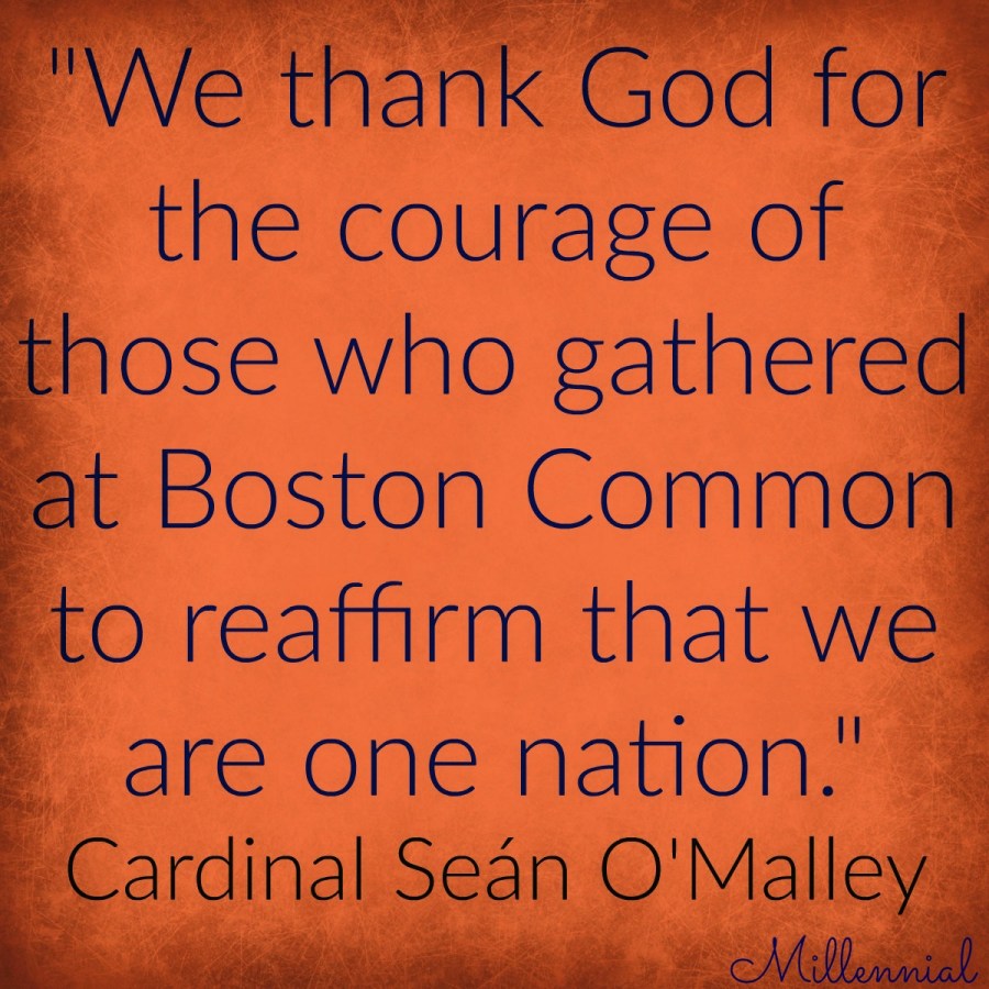 Cardinal Seán O’Malley: “We thank God for the courage of those who gathered at Boston Common to reaffirm that we are one nation.”