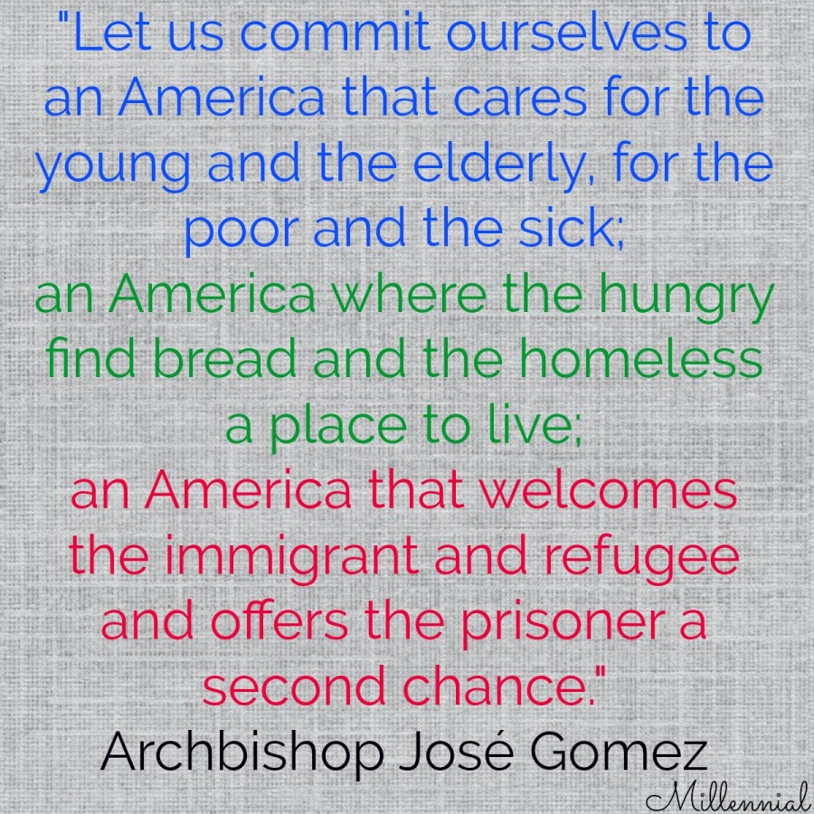 Archbishop José Gomez: “Let us commit ourselves to an America that cares for the young and the elderly, for the poor and the sick; an America where the hungry find bread and the homeless a place to live; an America that welcomes the immigrant and refugee and offers the prisoner a second chance.”