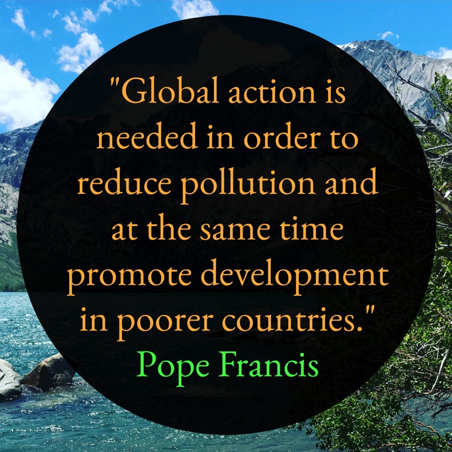 Pope Francis: “Global action is needed in order to reduce pollution and at the same time promote development in poorer countries.”