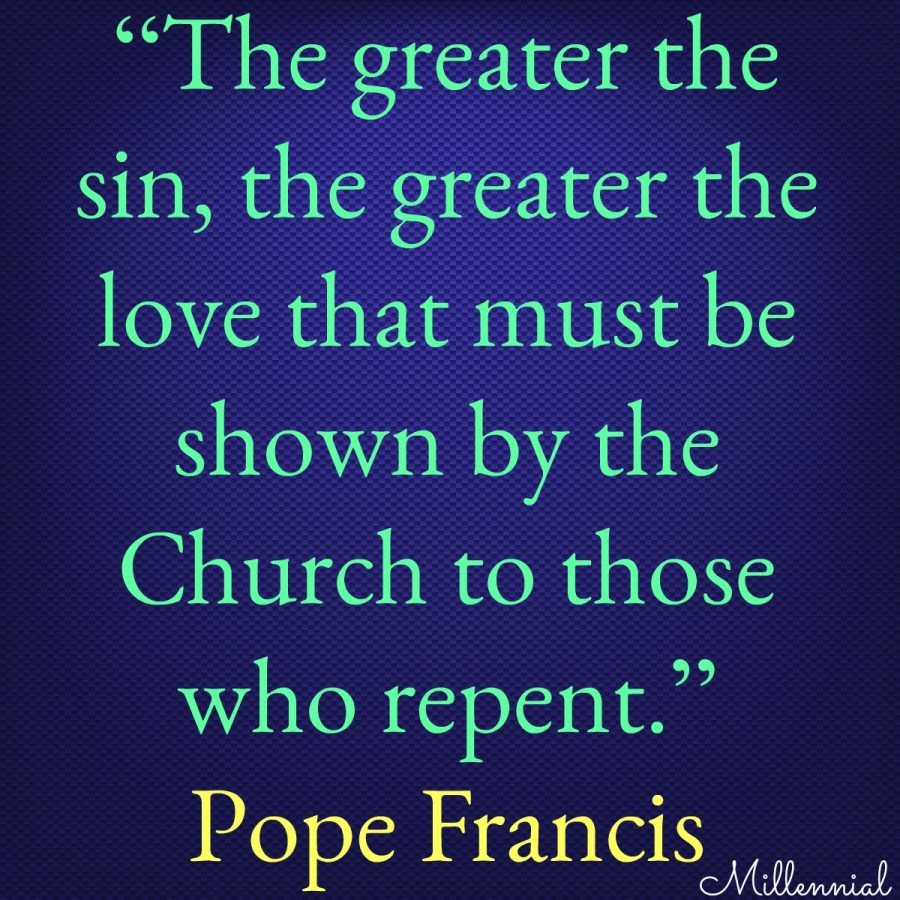 Quote of the Day Pope Francis: “The greater the sin, the greater the love that must be shown by the Church to those who repent.” Share this: Share on Facebook (Opens in new window) Facebook Share on LinkedIn (Opens in new window) LinkedIn Share on Threads (Opens in new window) Threads Share on Reddit (Opens in new window) Reddit Share on Tumblr (Opens in new window) Tumblr Share on X (Opens in new window) X Share on Bluesky (Opens in new window) Bluesky Share on Pinterest (Opens in new window) Pinterest Email a link to a friend (Opens in new window) Email Print (Opens in new window) Print Like Loading... Related