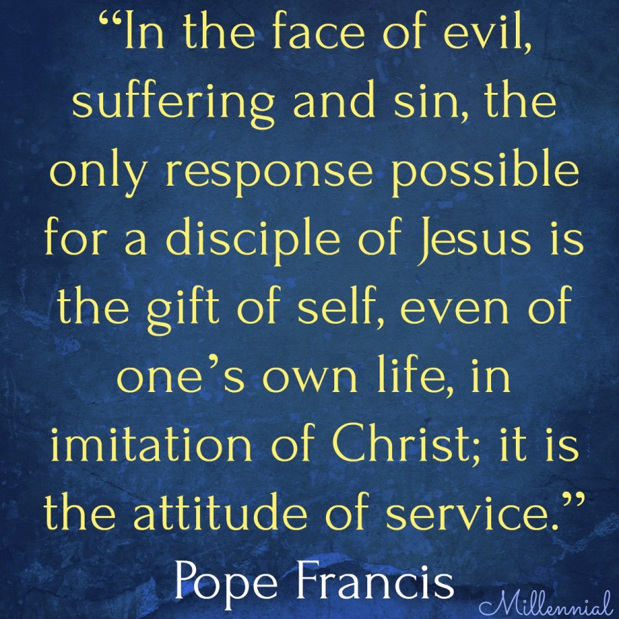 Pope Francis: “In the face of evil, suffering and sin, the only response possible for a disciple of Jesus is the gift of self, even of one’s own life, in imitation of Christ; it is the attitude of service.”