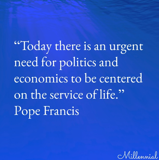 Quote of the Day Pope Francis: “Today there is an urgent need for politics and economics to be centered on the service of life.” Share this: Click to share on Facebook (Opens in new window) Facebook Click to share on LinkedIn (Opens in new window) LinkedIn Click to share on Threads (Opens in new window) Threads Click to share on Reddit (Opens in new window) Reddit Click to share on Tumblr (Opens in new window) Tumblr Click to share on X (Opens in new window) X Click to share on Bluesky (Opens in new window) Bluesky Click to share on Pinterest (Opens in new window) Pinterest Click to email a link to a friend (Opens in new window) Email Click to print (Opens in new window) Print Like Loading... Related