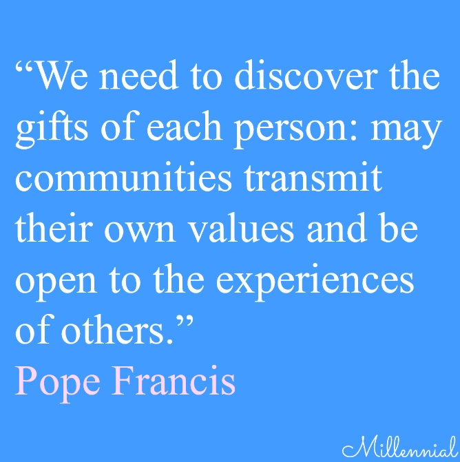 Pope Francis: “We need to discover the gifts of each person: may communities transmit their own values and be open to the experiences of others.”