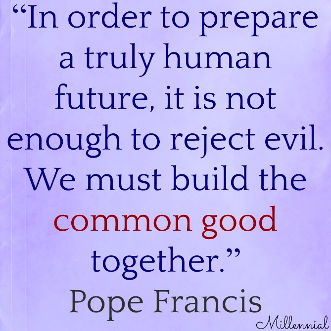 Pope Francis: “In order to prepare a truly human future, it is not enough to reject evil. We must build the common good together.”