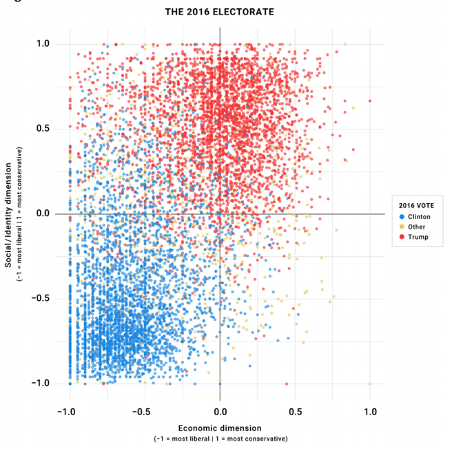Nicholas Phillips, writing at National Review, pointed to the sheer stupidity of the Schultz/Bloomberg thesis that there is a vast center of the electorate just pining to vote for someone who is fiscally conservative but socially liberal. Phillips included a graph created by political scientist Lee Drutman that plots voters based on their ideological preferences on both economic and social issues. One quadrant has those voters who are conservative on both economic and social issues, and it is almost exclusively Republicans. Opposite is a quadrant of those who self-identify as liberal on both economic and social issues. A third quadrant has those whose views are socially conservative but economically liberal, and it accounts for 28.9 percent of the 2016 electorate. The quadrant opposite, the Schultz/Bloomberg quadrant for those who are socially liberal but economically conservative, is the smallest of the four, with only 3.8 percent. Phillips calls it a “ghost town.” There is not, it turns out, a vast center of the electorate clamoring for what Schultz and Bloomberg offer. It is just their friends from the club.