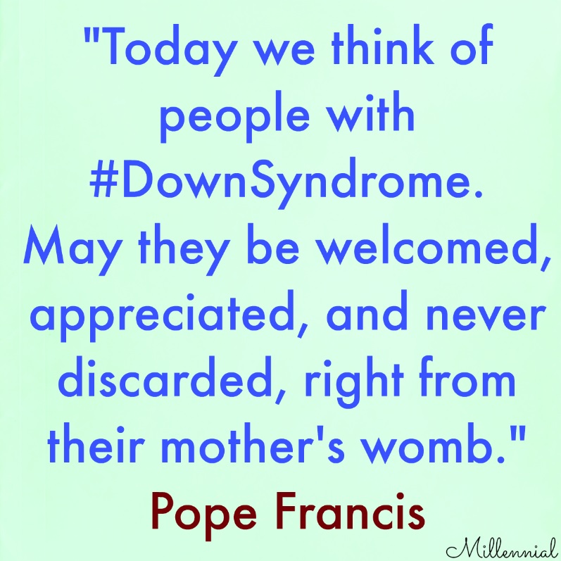 Pope Francis: “Today we think of people with #DownSyndrome. May they be welcomed, appreciated, and never discarded, right from their mother’s womb.”