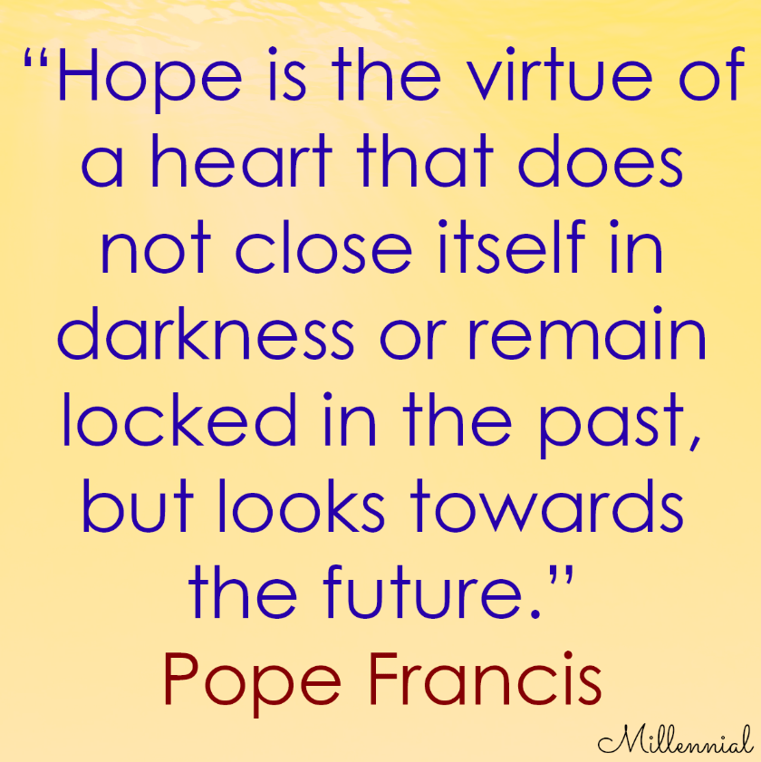 Pope Francis: “Hope is the virtue of a heart that does not close itself in darkness or remain locked in the past, but looks towards the future.”