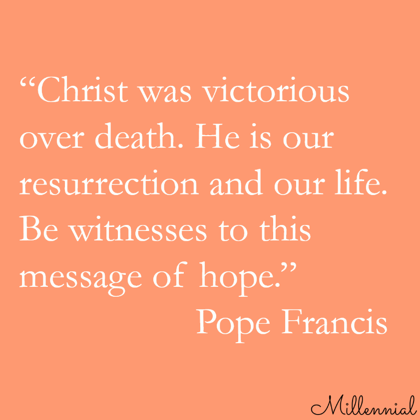 Quote of the Day Pope Francis: “Christ was victorious over death. He is our resurrection and our life. Be witnesses to this message of hope.” Share this: Click to share on Facebook (Opens in new window) Facebook Click to share on LinkedIn (Opens in new window) LinkedIn Click to share on Threads (Opens in new window) Threads Click to share on Reddit (Opens in new window) Reddit Click to share on Tumblr (Opens in new window) Tumblr Click to share on X (Opens in new window) X Click to share on Bluesky (Opens in new window) Bluesky Click to share on Pinterest (Opens in new window) Pinterest Click to email a link to a friend (Opens in new window) Email Click to print (Opens in new window) Print Like Loading... Related