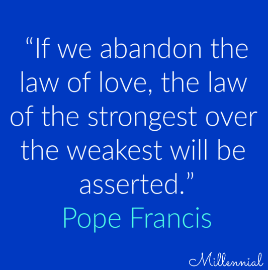 Pope Francis: “If we abandon the law of love, the law of the strongest over the weakest will be asserted.”