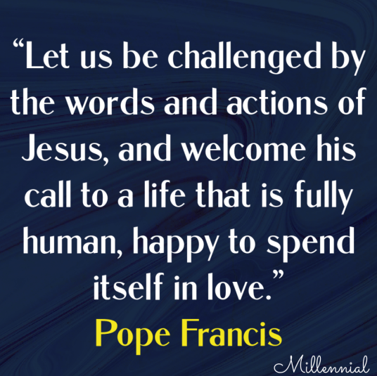 Pope Francis: “Let us be challenged by the words and actions of Jesus, and welcome his call to a life that is fully human, happy to spend itself in love.”