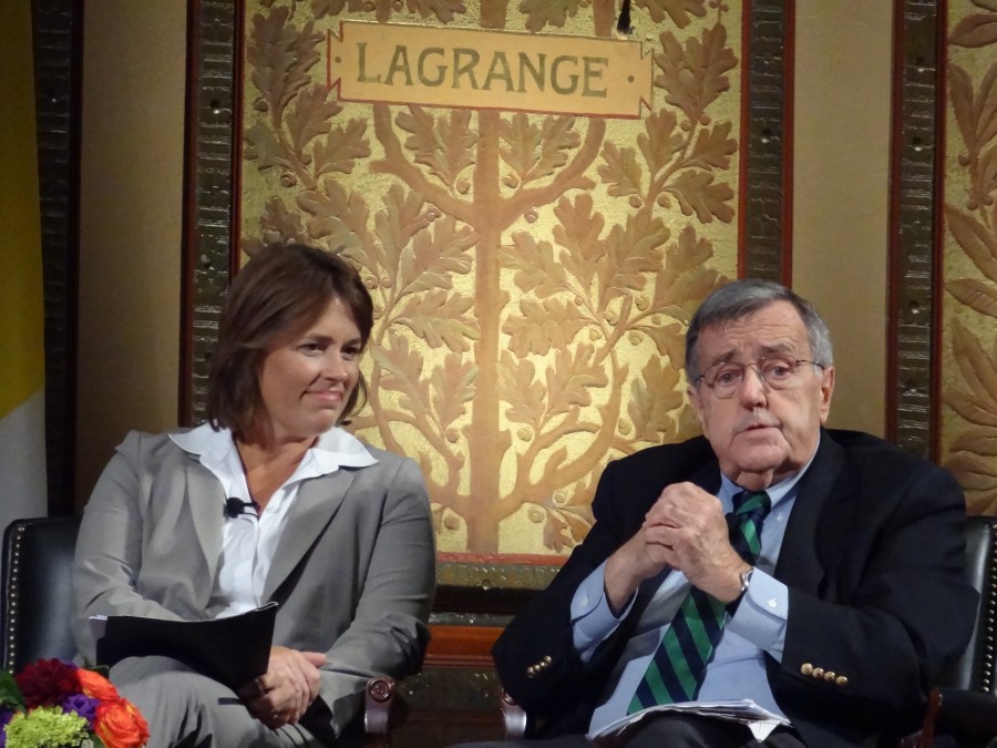 Mark Shields, a national columnist and commentator, recalled the joy of Christianity that Pope John XXIII displayed. He believes Francis brings that sense of joy about the gospel as well. He remarked that Francis does not focus on talking about loving and caring in the abstract, but living it out in his interactions with those he encounters. Shields also stressed the communitarian mentality of Pope Francis, his tendency to ask “are we better off?” This again contrasts with the typical embrace of individualism in our society.
